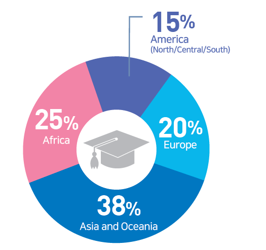 We are one of the top 5 universities in Korea with the most diverse student body. Every semester, students from 77 different countries around the world come to Ajou University to broaden their horizons.