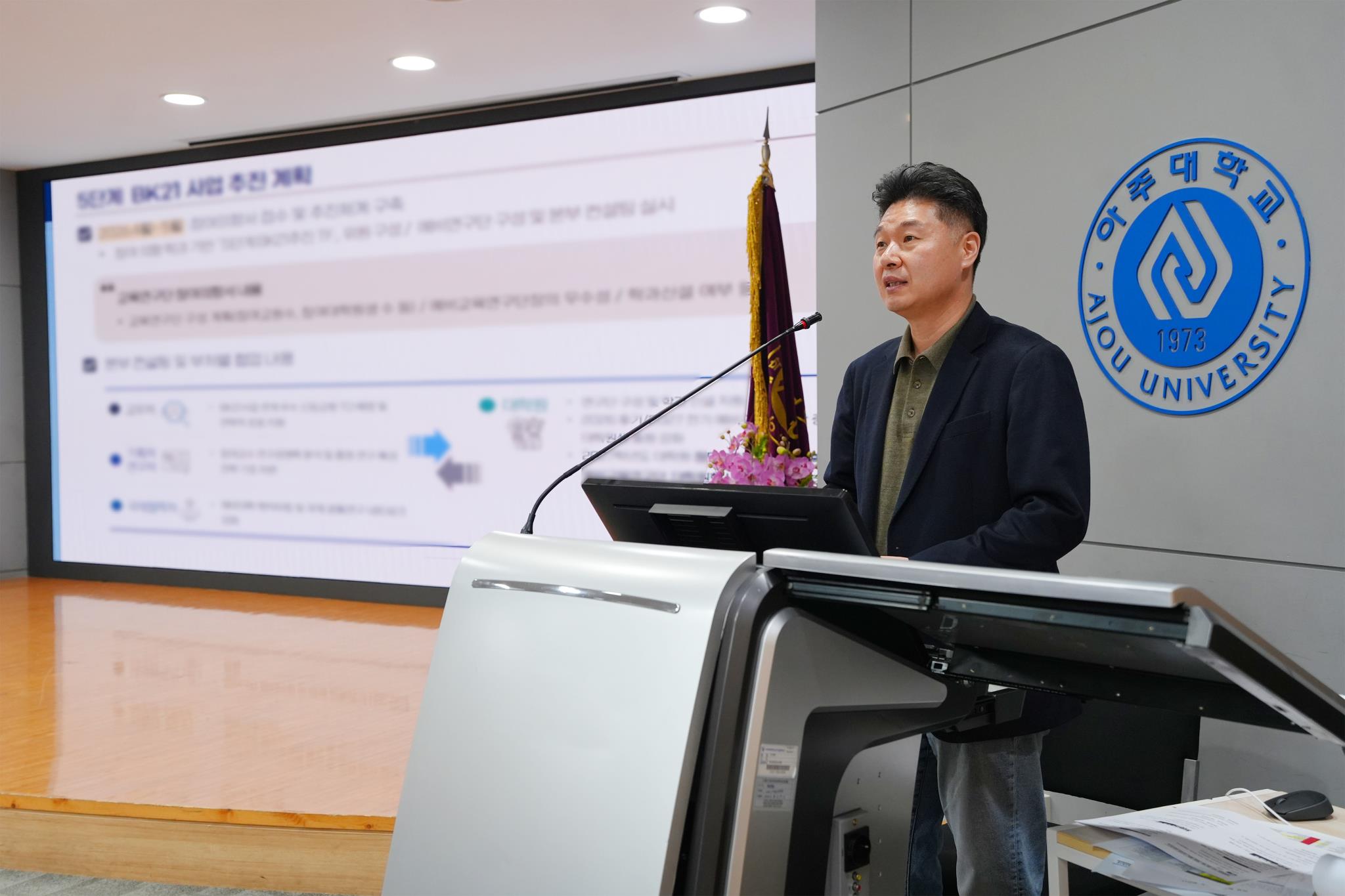BK21 사업에 대한 내용을 발표하는 김상인 대학원장